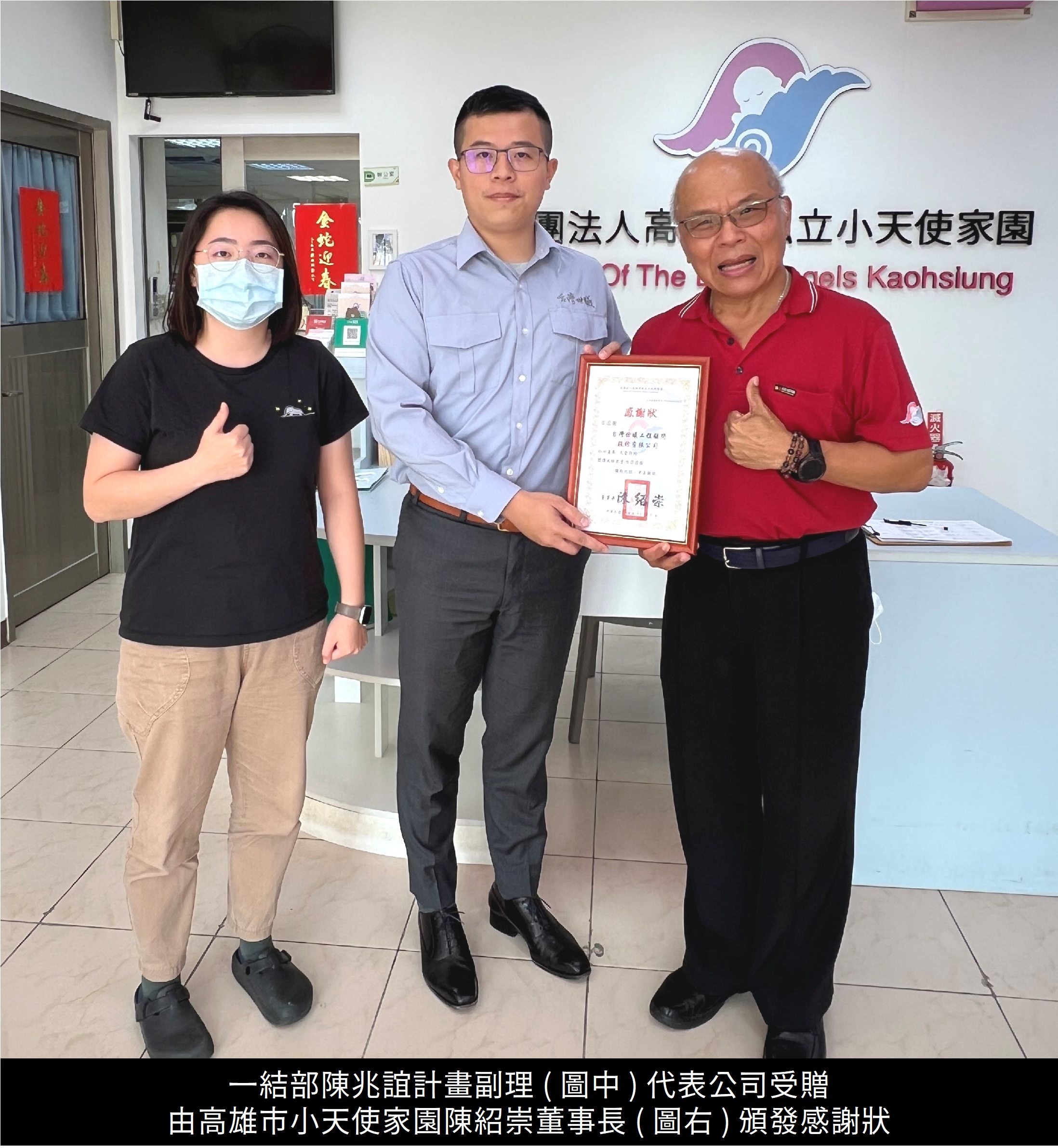 11月7日台灣世曦由第一結構部陳兆誼計畫副理代表於出席財團法人高雄市私立小天使家園受贈儀式,關懷失依嬰幼兒的成長環境。當天也與小寶貝們午休醒來後做互動,在他們遊戲時間陪同玩人力推車,希望短短的互動時間能讓他們發自內心的歡樂。小天使家園自民國93年起收容失依及家庭遭逢變故的嬰幼兒,後在政府協助下於民國99年正式成立,並於100年取得收出養業務執照,提供0至6歲嬰幼兒安置與出養服務。家園以落實孩童皆有所養之福祉,攜手打造孩子穩固的避風港為宗旨,致力於給予安全、溫暖的生活環境。民國105年遷至高雄市路竹區,安置床位增至24床,服務更多有需要的孩子。成立以來,小天使家園已為305位嬰幼兒提供照顧,並成功為165位孩童找到新家庭。台灣世曦表示:「每一份關懷都是孩子未來的一盞燈,我們願成為他們回家路上的一份力量。」